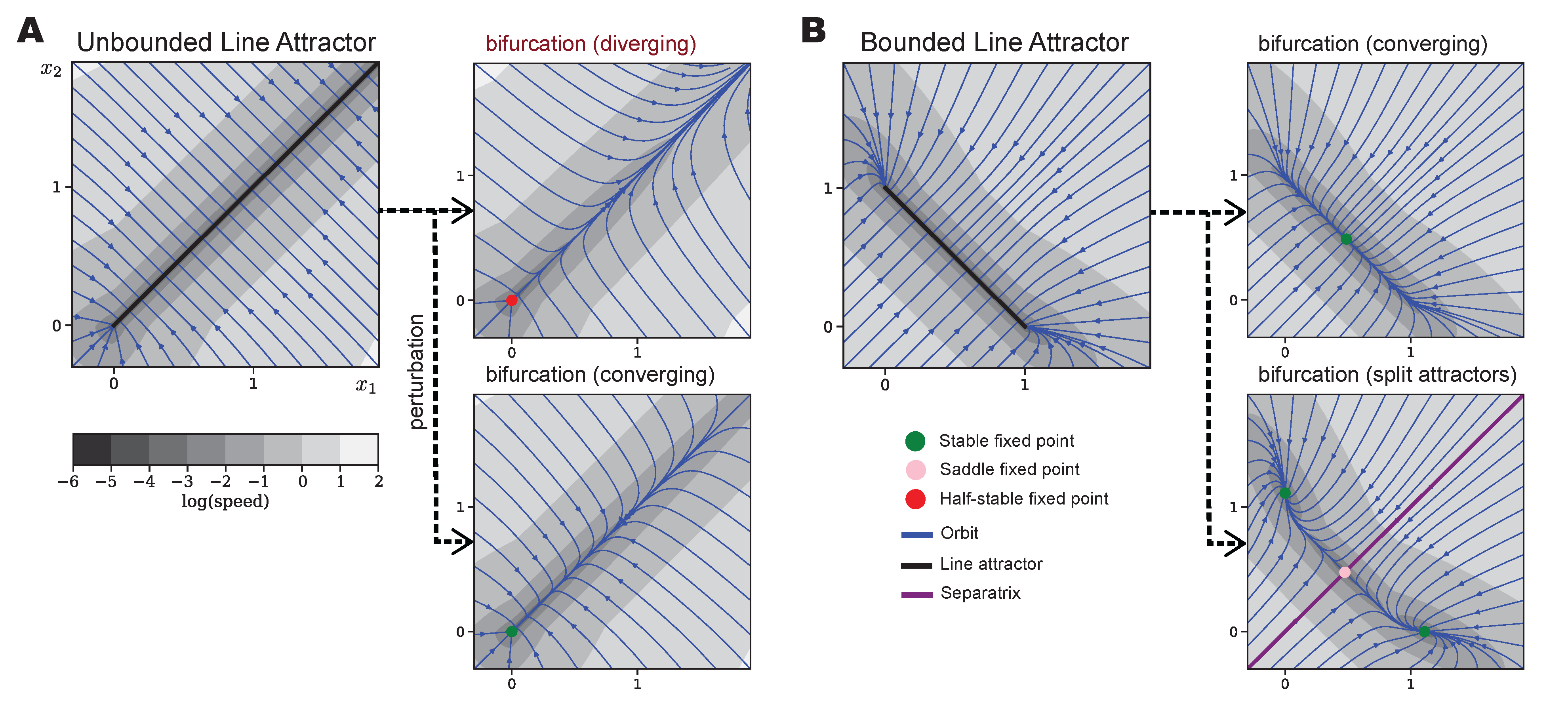 The mild condition is that the attraction to the manifold being fast enough in all directions (called “normal hyperbolicity”). Our theory guaranetees their short-term behavior to be close to the continuous attractor given a small perturbation in their flow.
