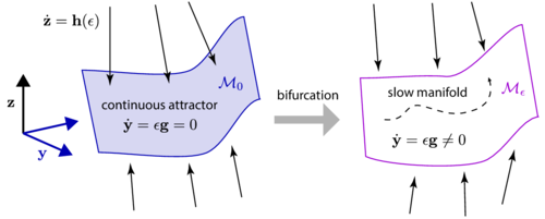 However, continuous attractors with a mild condition do not completely vanish when they are destroyed. They leave a ghost of their existence. A shadow. A **slow manifold**.